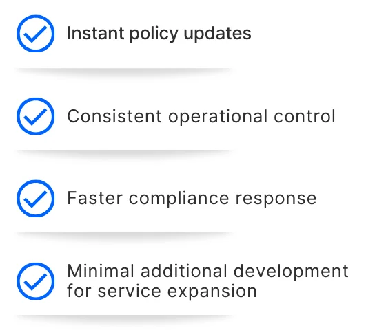 Whenever a new policy is introduced, businesses typically need development requests, feature updates, testing, and deployment cycles before the change becomes operational. During that gap, operations teams often rely on manual reviews or temporary exceptions, which increases both complexity and risk.