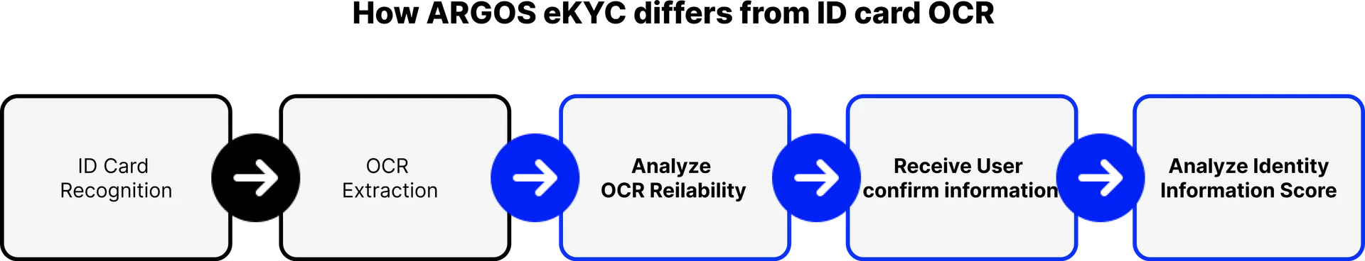The eKYC service provided by ARGOS is a comprehensive service that takes care of the entire user onboarding process. It allows users to seamlessly proceed from identification to service use without the need for complex OCR retries. It also includes all the additional features required for the eKYC process, such as anti-counterfeiting, one-factor authentication, and selfie authentication.